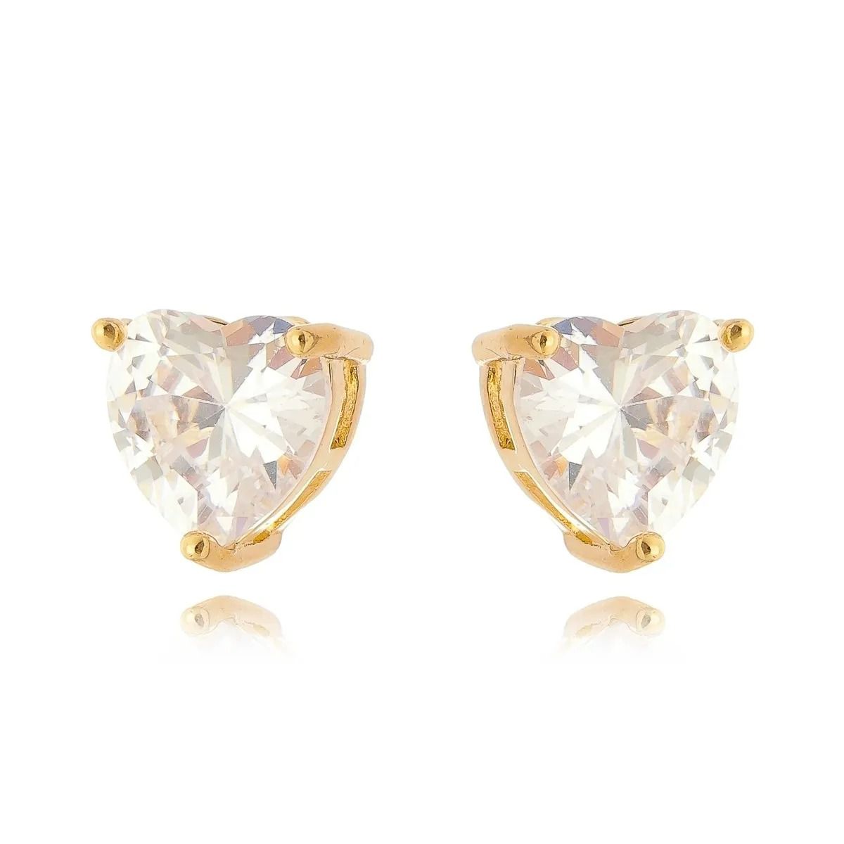 Brinco com cristal coração zircônias em Prata 925 com banho de ouro 18K.
