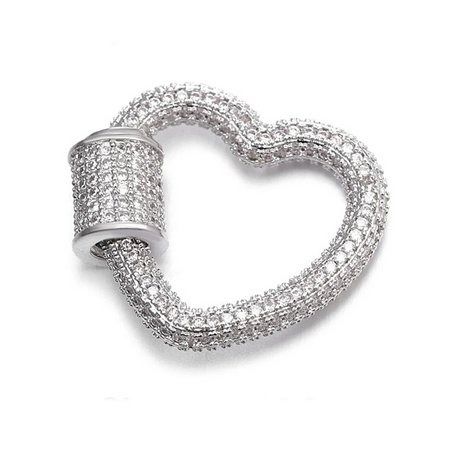 Pingente locker coração cravejado com zircônias branco no ródio branco.