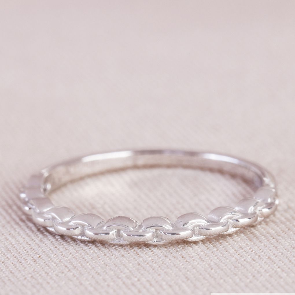 Anel de elos lisos largos feito em prata 925 com banho de ródio branco.