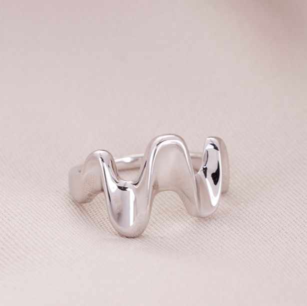 Anel largo com frisos feito em prata 925 com banho de ouro 18K.
