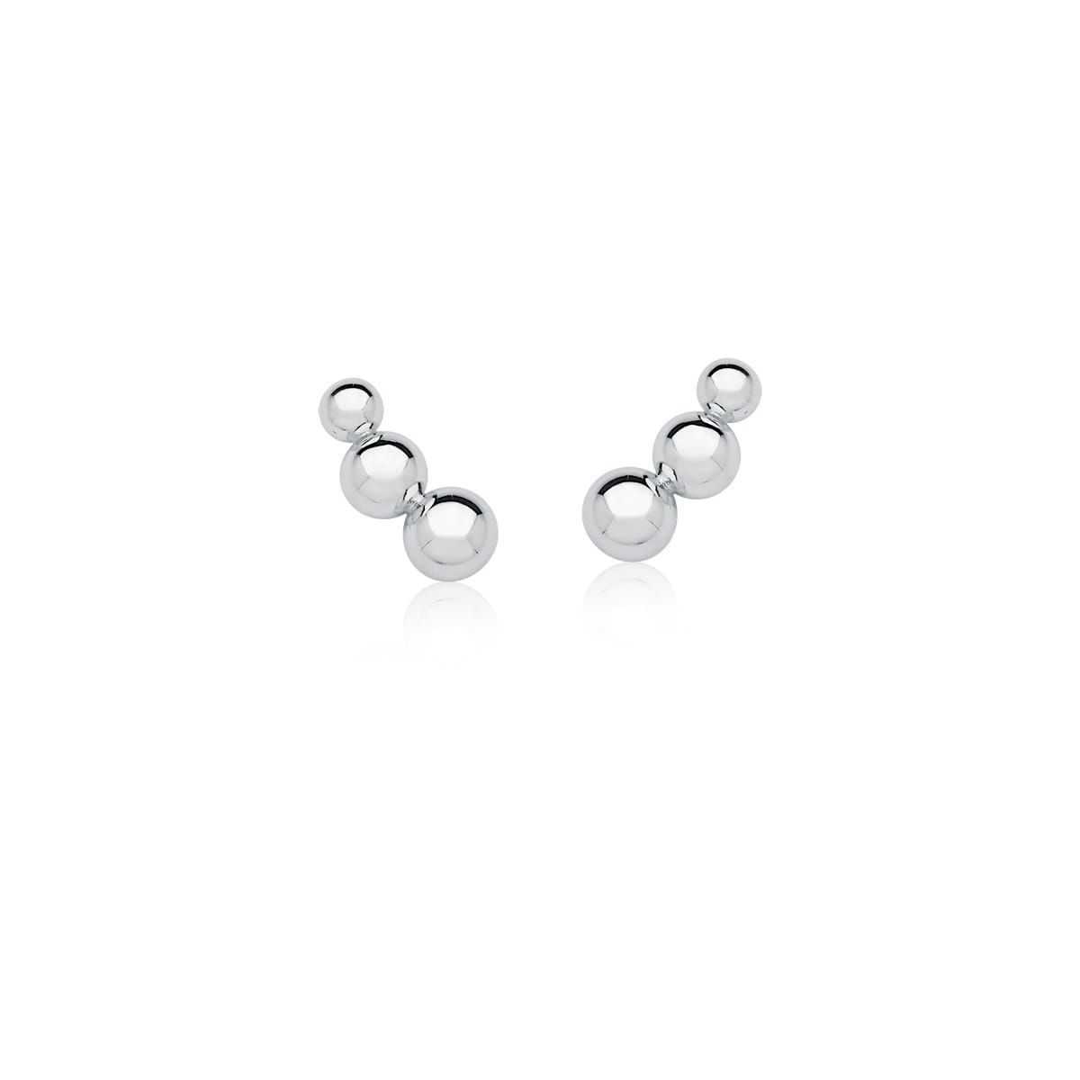 Brinco ear cuff três esferas decrescentes lisas banhado a ródio.