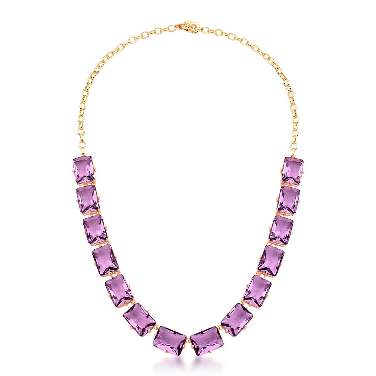 Colar com cristais retangulares na cor ametista banhado a ouro.