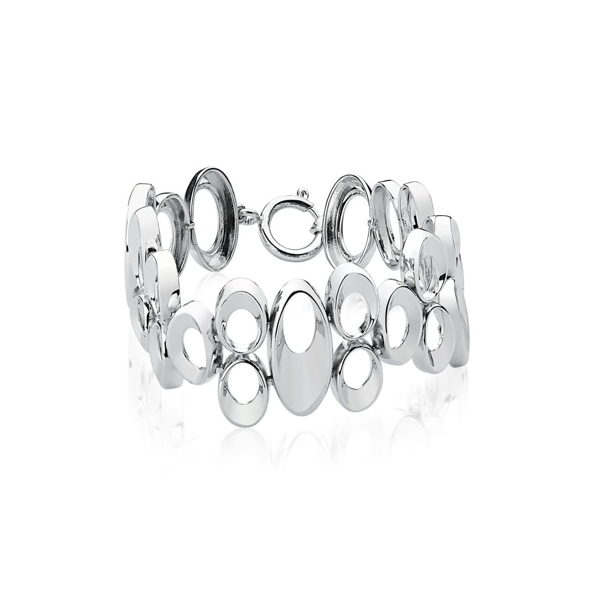 Pulseira com ovais vazados e lisos com fecho boia banhada a ródio.