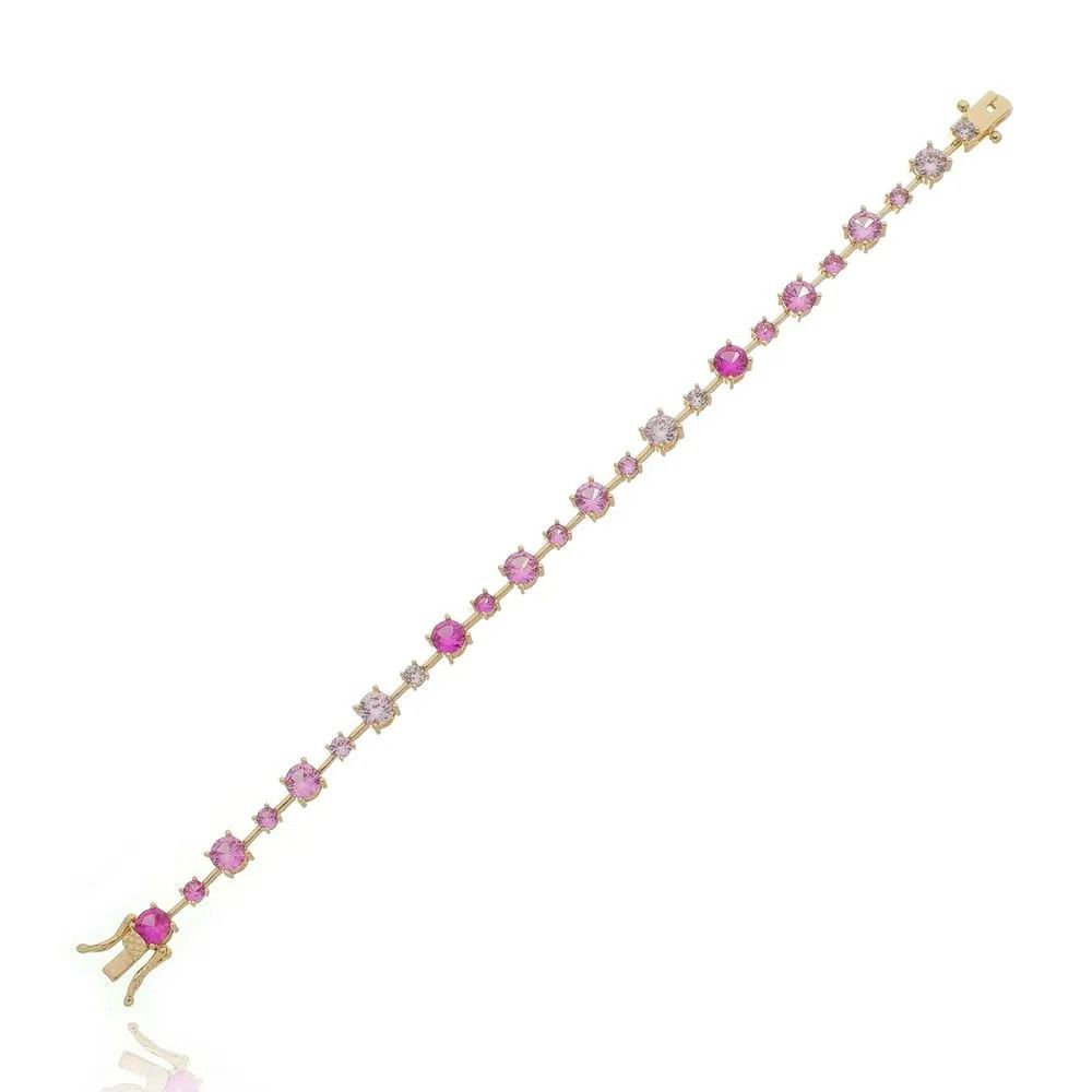 Pulseira riviera cravejada de zircônias Pink em degradê de cores. Disponível no banho polido de ouro amarelo 18K.