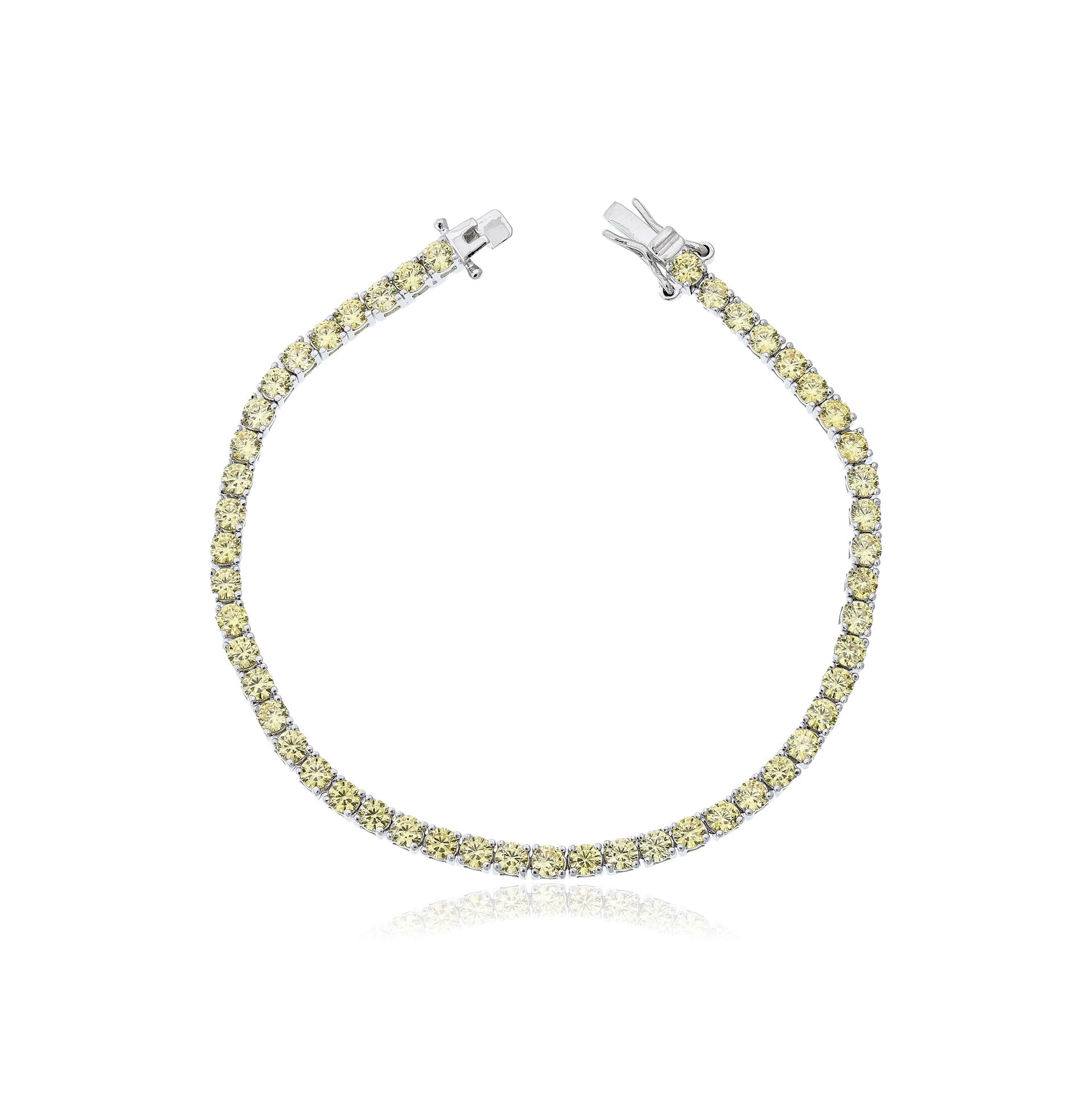 Pulseira riviera de 3 garras com zirconias redondas de 3 mm yellow fancy em prata 925 com banho ródio.