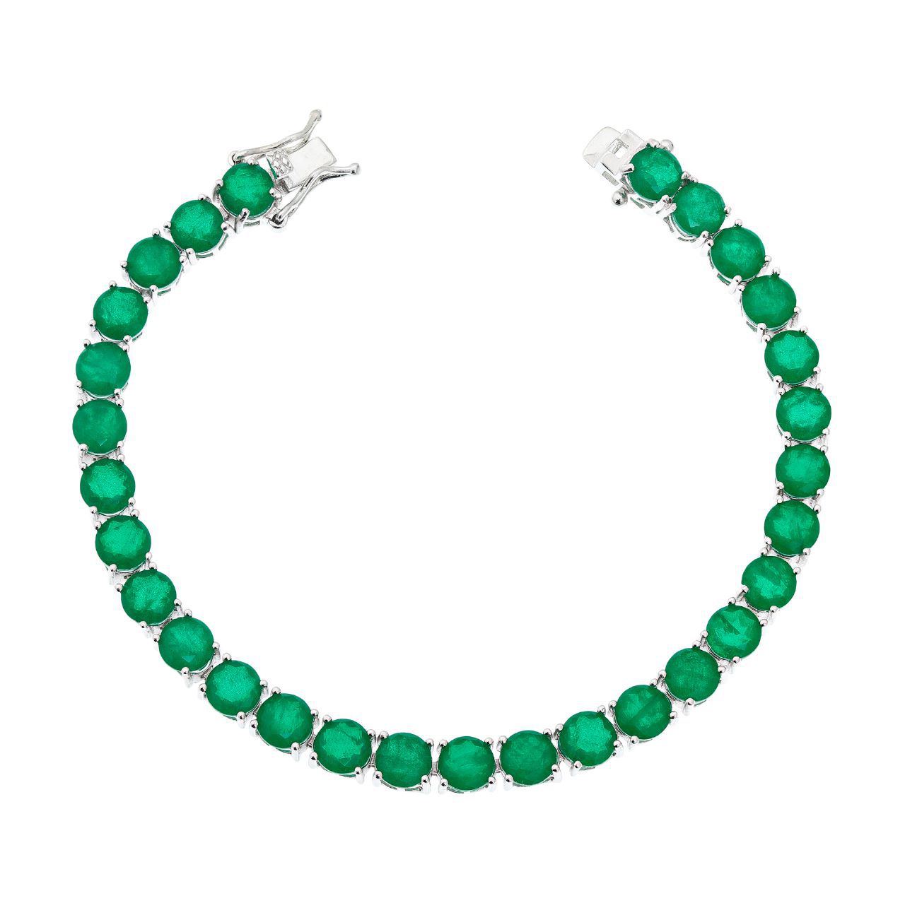 Pulseira estilo riviera com zircônias esmeralda de 5mm, feito em Prata 925 com banho de ródio branco.