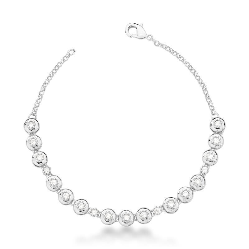 PULSEIRA COM ESFERAS LISAS E ZIRCÔNIAS BRANCAS BANHO RODIO SM